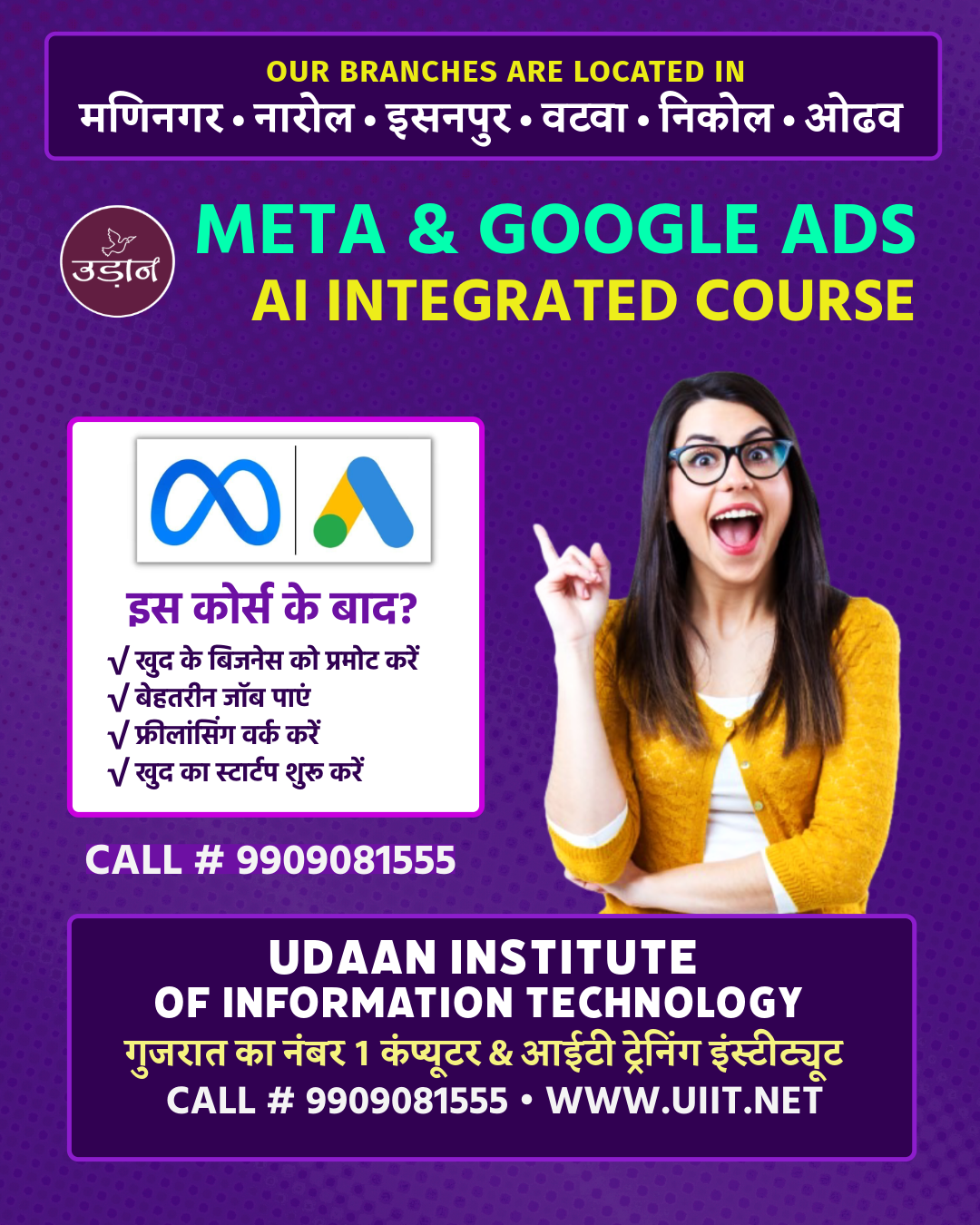 The Odhav / Nikol branch of Udaan Institute of Information Technology (UIIT) offers a strong, comprehensive Digital Marketing program — combining breadth (50+ tools, 150+ topics) and flexibility (online/offline, beginner to advanced). With free study material, job-assistance, and a location within reach for residents of Odhav / Nikol, it stands out as one of the most suitable institutes in this area for digital-marketing training.